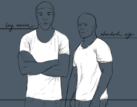 Wie schon der Name vermuten lässt, gibt es ausschließlich weiße Männer-Shirts, erhältlich in sage und schreibe 12 Größen. Diese umfassen nicht nur die üblichen Konfektionsgrößen, sondern auch zwei verschiedene Längen.